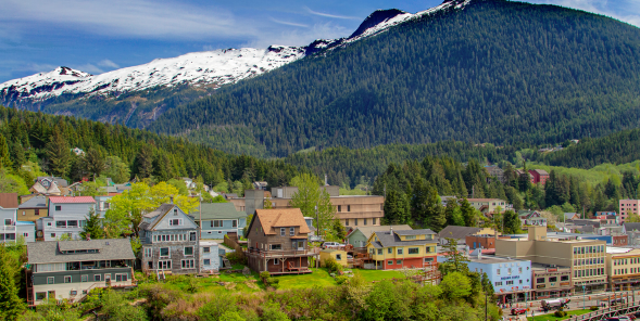 Juneau: a charmosa capital do Alasca, cercada por montanhas e geleiras, é o ponto de partida ideal para avistar baleias e explorar o majestoso Glacier Mendenhall.