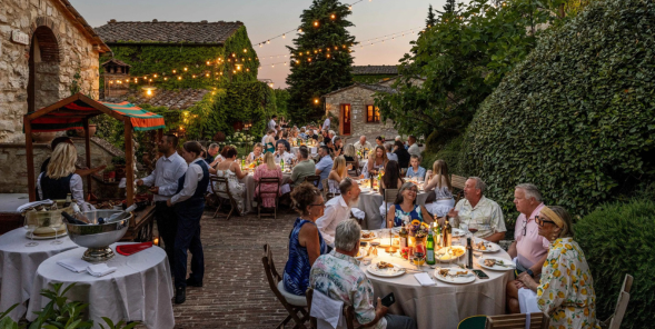La Cena in Piazza é uma experiência cultural e gastronômica inesquecível: um cenário que recria o clima dos vilarejos medievais, com barracas rústicas, pratos tradicionais, música ao vivo e uma atmosfera que celebra os sabores e a alegria da Toscana.