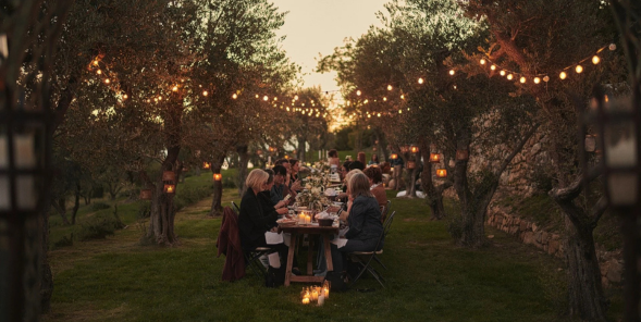 Uma outra experiência inclusa é esse jantar, rodeado por estrelas, com vista para a vegetação e o farfalhar das folhas de nossas oliveiras toscanas centenárias. Você passará uma noite em boa companhia, embalado pela brisa fresca da noite, saboreando pratos excelentes preparados pelo chef.